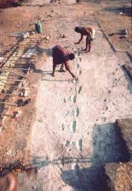 In this manner, wonderfully free from the weight of their predestination over the next 3.7 million years, this little group walked on by, leaving nothing but footprints. It's a wonder they didn't stop and look back on them with amazement, maybe they did. The footprints remained in the ash long after it had become solid rock. The imprinted rock was covered by layer upon layer of soils over the millennia. Then the turnings of the earth and the relentless sweep of time removed the covering layers, grain by grain, sweeping them away until our groups’ signature footprints lay within reach of dainty pick and brush work by those inclined to such things.